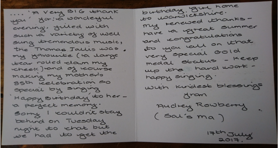 We LOVE singing, we can deliver our plan for any song, we know how to entertain, Simon’s costume needs more sequins, we follow commands well (“wave!”), we have improved our sound year on year. If all that wasn’t enough, this is a fabulous group of people who know how to enjoy what they are doing and have FUN!